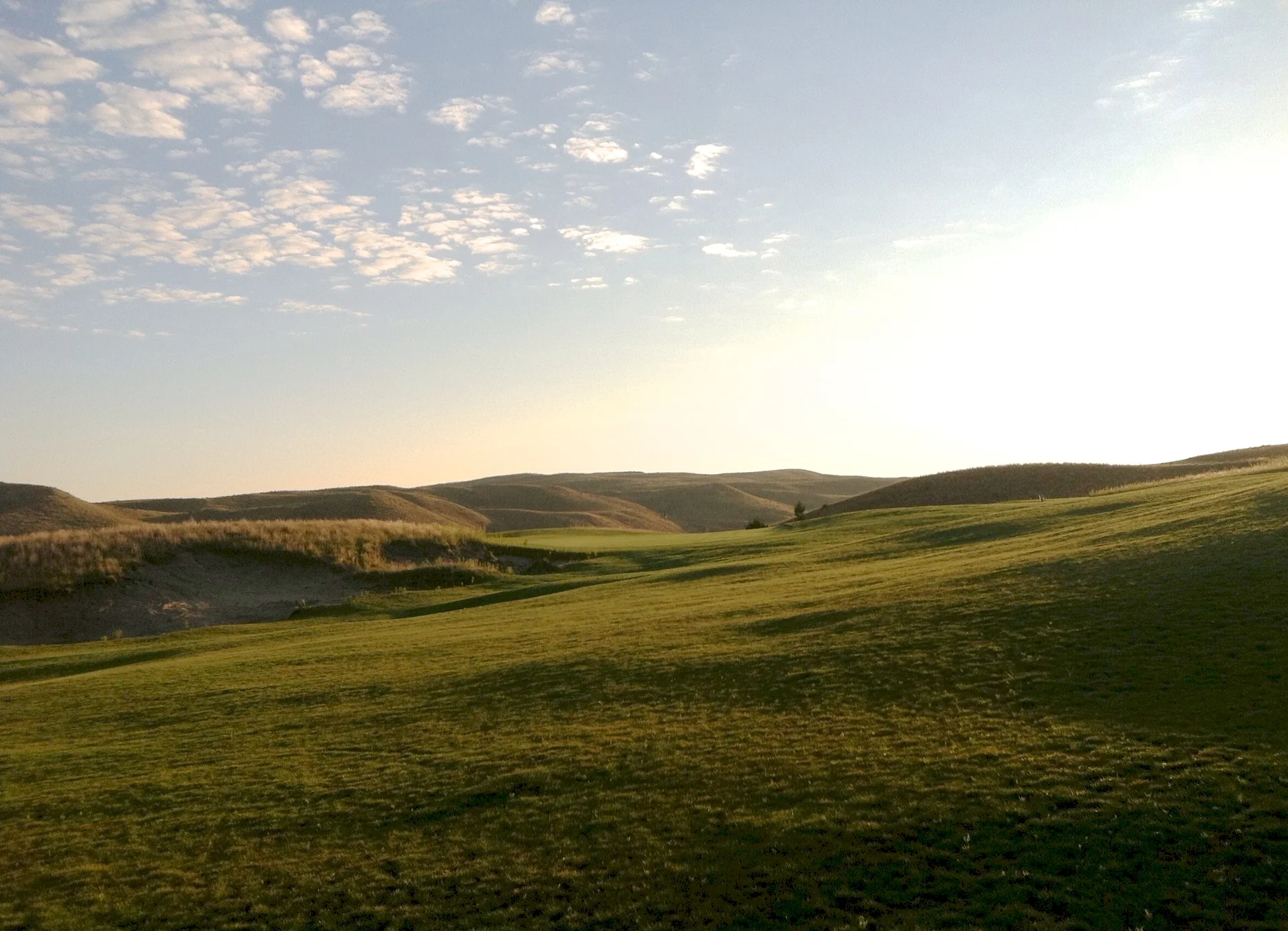 Using the late day light to create some shadow-catchers with the sand pro right of the 15th green