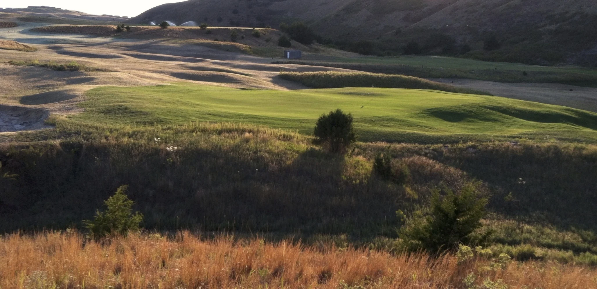 Looking back on hole 15 at Dismal River. The surrounds of this green complex is where I first worked on a sand pro (trap rake), working toward making the ground as rumply and textured as appropriate.